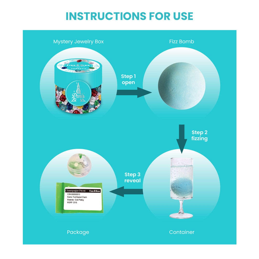 Fizz & Rizz by Yorkett Jewelry Mystery Box with Amelia Collectible Themed Charms Chain Bracelet Adjustable Pendant